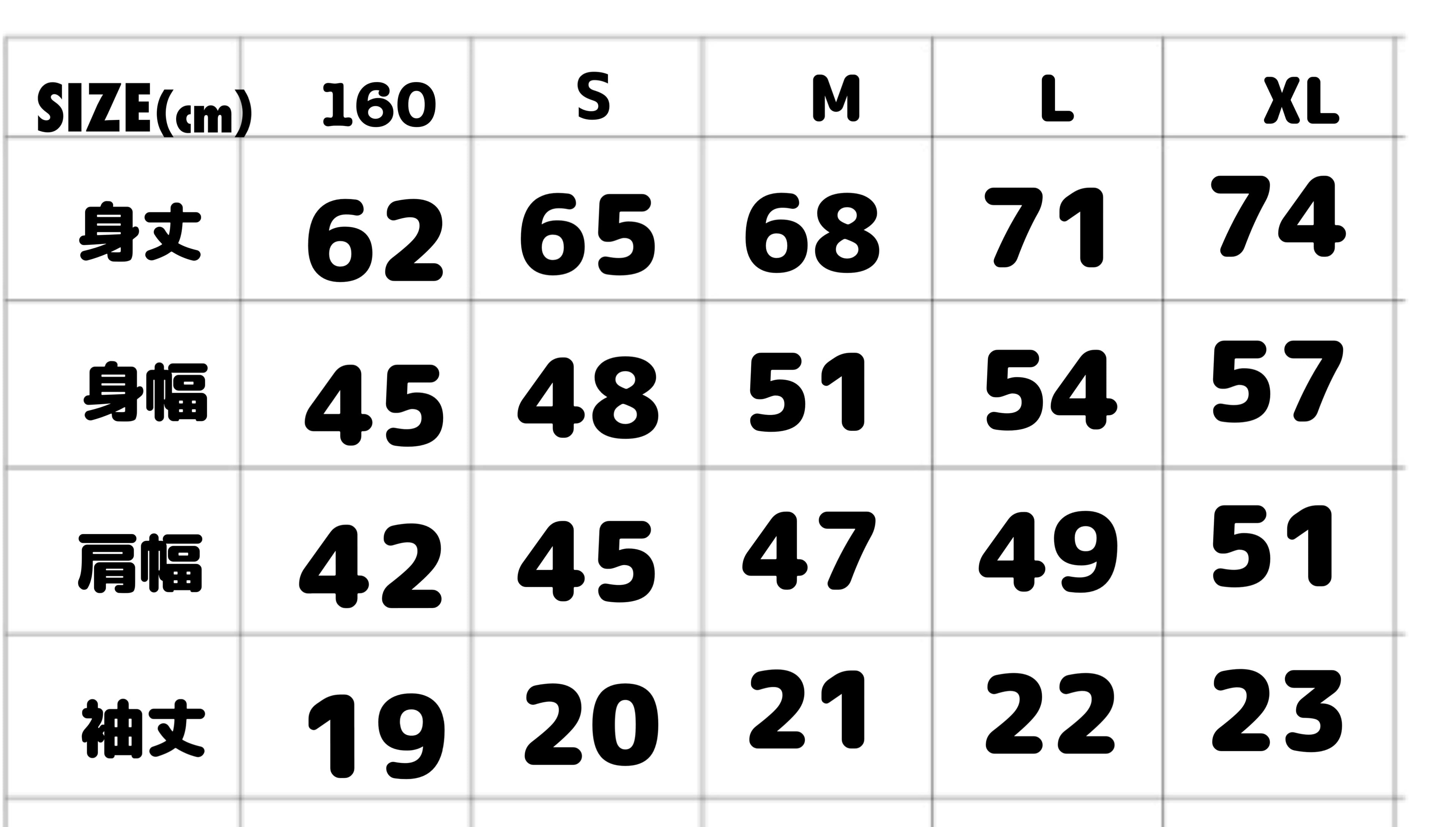XL : 袖丈74,身幅57,肩幅51,袖丈23(cm)